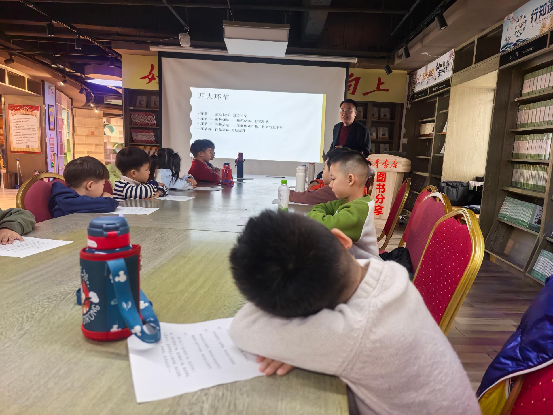 为了让学生掌握正确的发音吐字方法,能够有感情地朗读不同体裁的作品,敢于大声表达,培养语感和对文字的热爱。 敢于当众表达,增强自信心,能准确把握并传达文学作品的情感内涵。中心组织志愿者在新华书店开展“悦诵经典”朗诵指导活动,通过活动,孩子们能够合作完成集体朗诵,独立完成个人代表作的展示。能够独立完成文学作品的层次分析、意象解读与情感逻辑梳理。 掌握声音的强弱、虚实、明暗、快慢的极致对比与瞬间转换。能够具备成熟的舞台风范,能够运用空间、道具、目光进行有张力的表演。