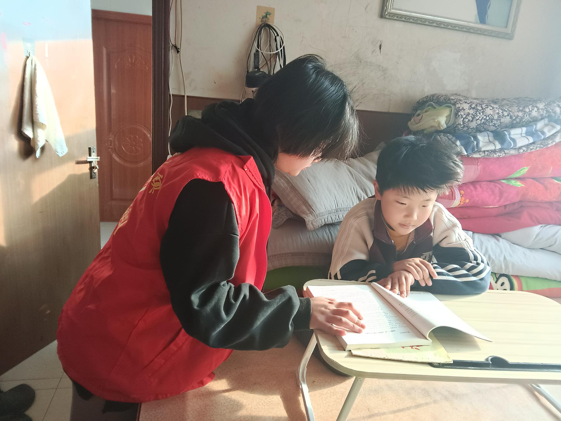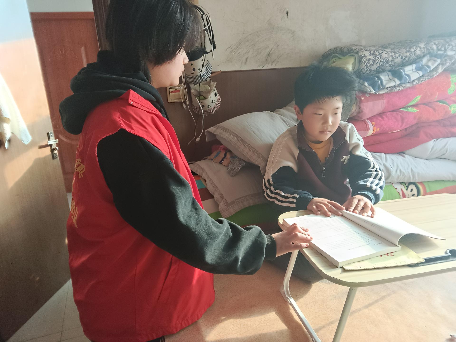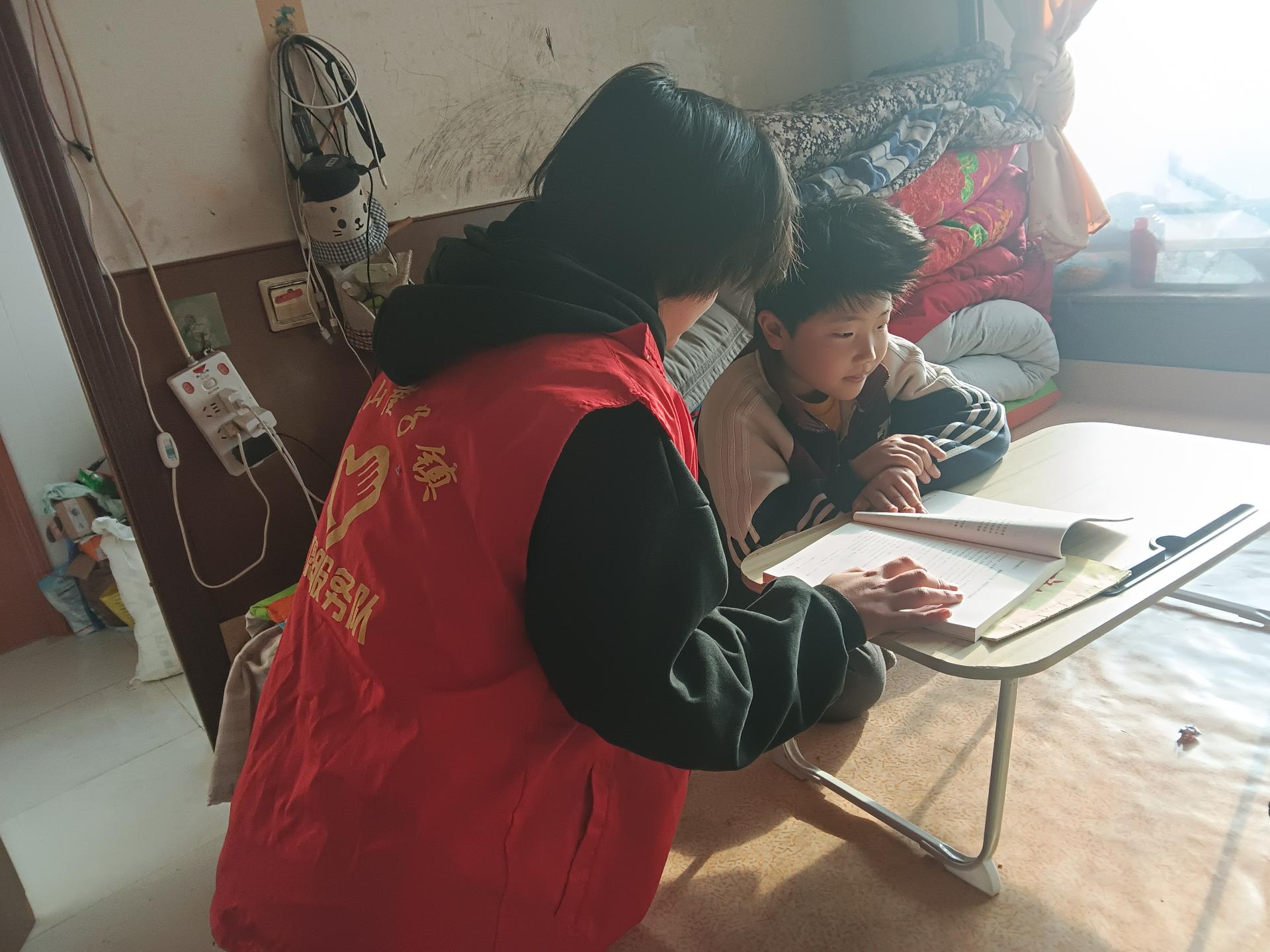2026年2月9号,放寒假了,志愿者孙琳清同学利用假期的时间给村里的低年级的学生进行假期作业课程辅导。